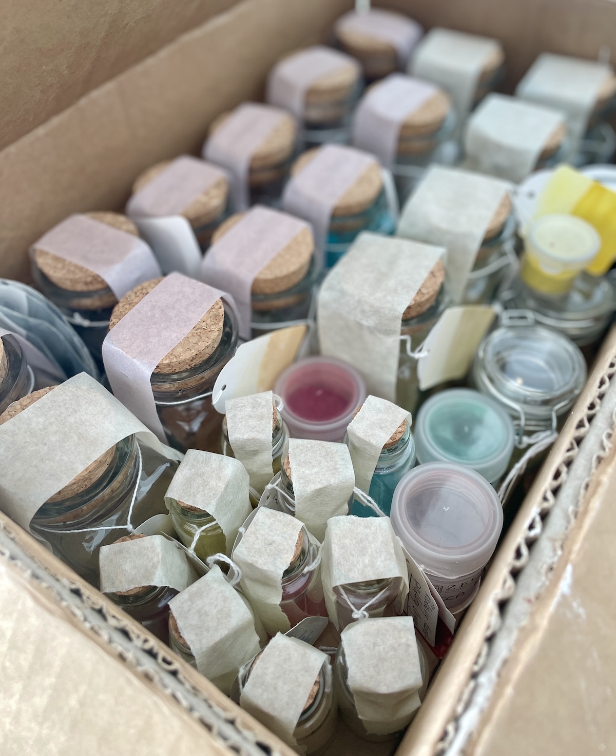 We bought an old courtyard farm built in the 1860s! It's been an intense few months of packing (with my pigments carefully boxed up) emptying the studio (including moving the very heavy printing press...), painting over every artistic "trace" and finally getting everything tightly packed into a container while waiting for the keys to our new home (and studio)…